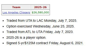 如下图所示,科林斯还有1年2650万美元合同。属于到期合同下,至少积极性这点不用担心。说白了,打的不够努力是直接影响下份合同的大小。积极性高,一定程度更有利于打出好的表现。到期合同有促进作用,这是其四。